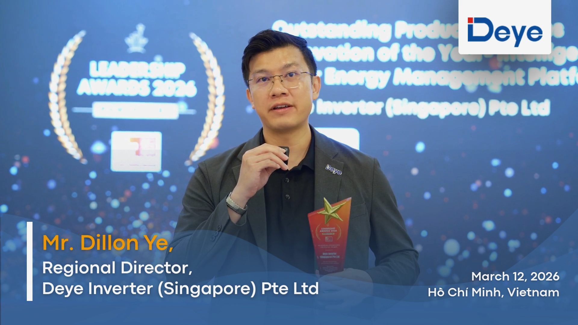 Ho Chi Minh City, Vietnam – Deye Inverter (Singapore) Pte Ltd has been honored with the Technology & Innovation Excellence Award for Outstanding Product/Services Innovation of the Year – Intelligent Solar Energy Management Platform at the Solar Week Vietnam Leadership Awards 2026. The award recognizes organizations that are pushing the boundaries of innovation and enabling smarter, more efficient renewable energy systems.
